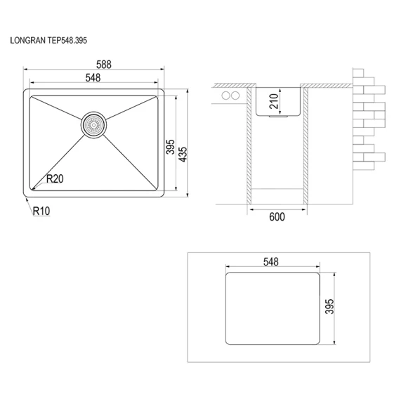 Кухонная мойка полированная сталь Longran Techno TEP548.395 -GT10P