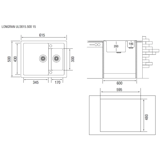 Кухонная мойка марон Longran Ultra ULS615.500 15 - 93