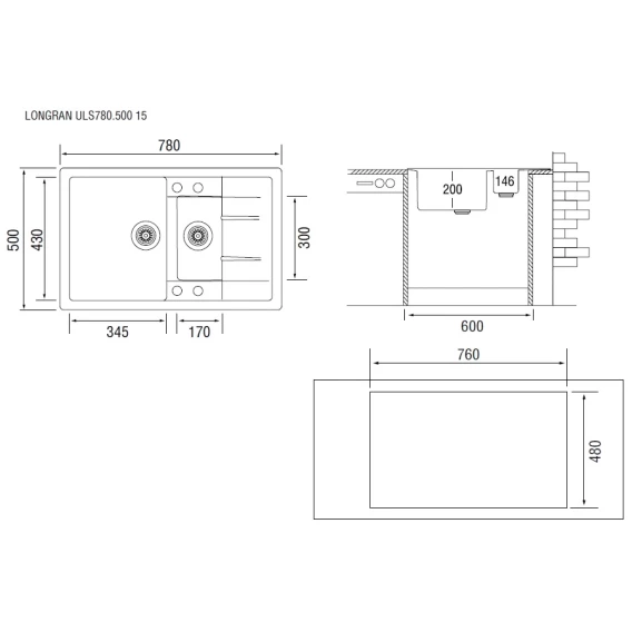 Кухонная мойка лава Longran Ultra ULS780.500 15 - 40