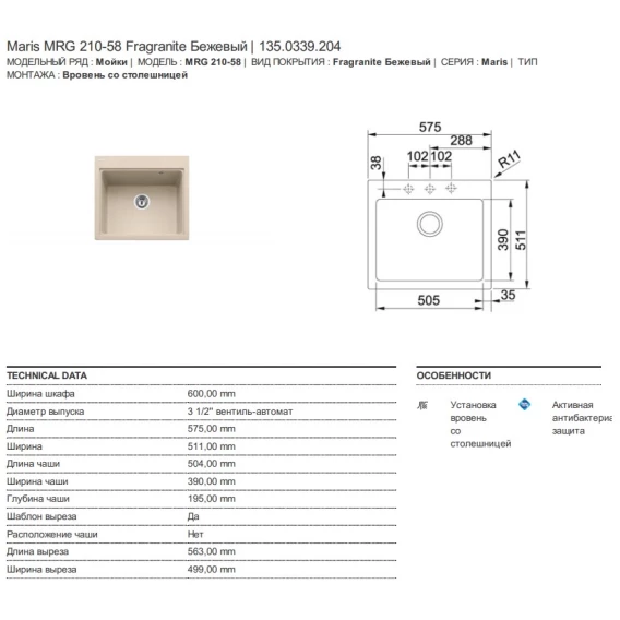 Кухонная мойка Franke Maris MRG 210-58 бежевый 135.0339.204