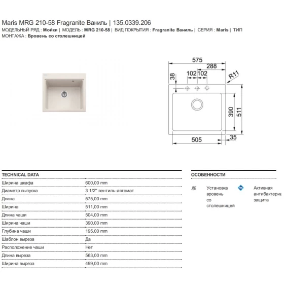 Кухонная мойка Franke Maris MRG 210-58 ваниль 135.0339.206