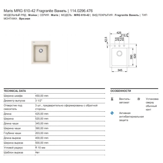 Кухонная мойка Franke Maris MRG 610-42 ваниль 114.0296.476
