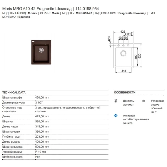 Кухонная мойка Franke Maris MRG 610-42 шоколад 114.0198.954