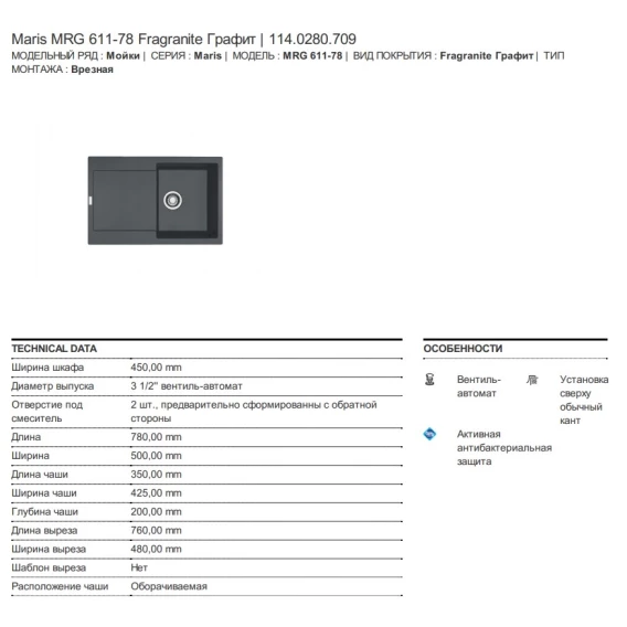 Кухонная мойка Franke Maris MRG 611 графит 114.0280.709