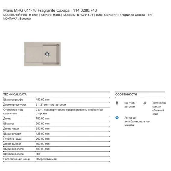 Кухонная мойка Franke Maris MRG 611 сахара 114.0280.743