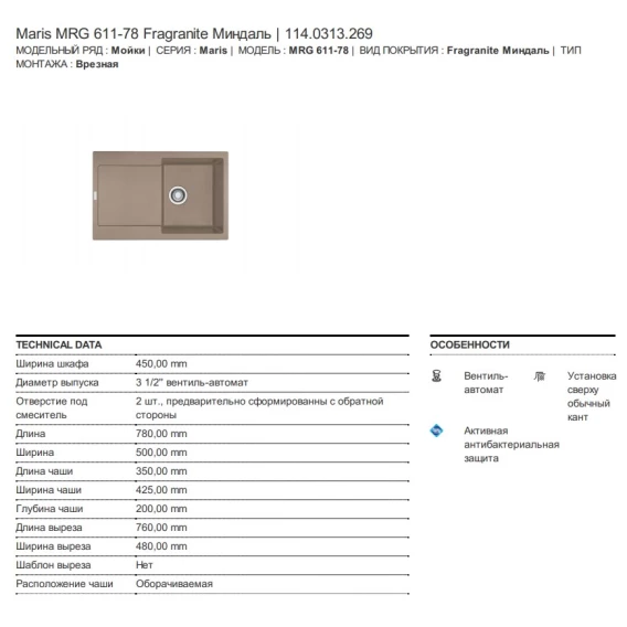 Кухонная мойка Franke Maris MRG 611 миндаль 114.0313.269