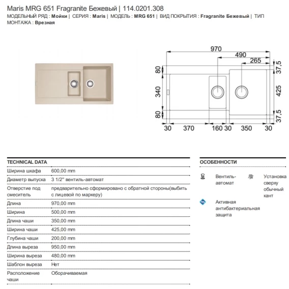 Кухонная мойка Franke Maris MRG 651 бежевый 114.0201.308