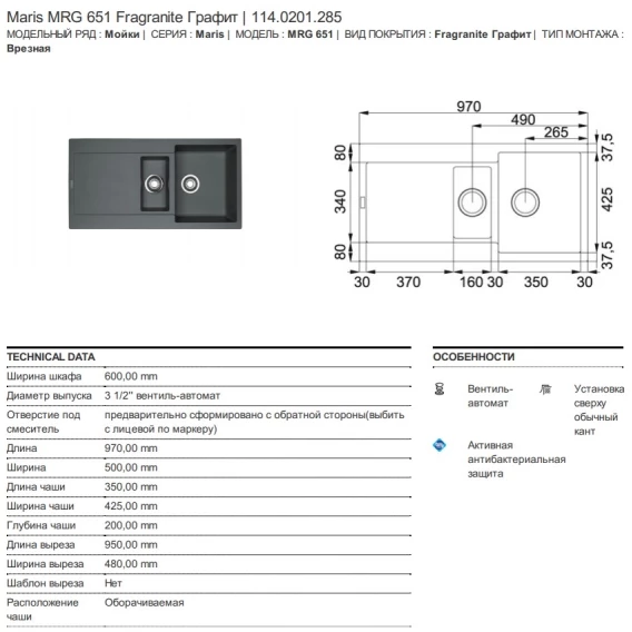 Кухонная мойка Franke Maris MRG 651 графит 114.0201.285