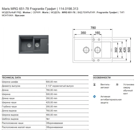 Кухонная мойка Franke Maris MRG 651-78 графит 114.0198.313
