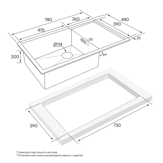 Кухонная мойка KuchenStern Kraft 45 500SS50 44x44 см, нержавеющая сталь