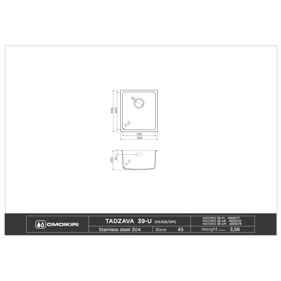 Кухонная мойка латунь Omoikiri Tadzava 39-U/I-AB 39-AB
