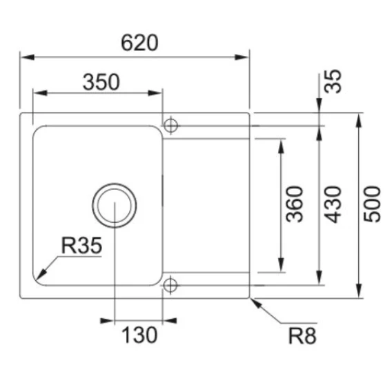 Намеченных отверстий для смесителя