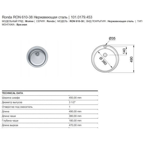 Кухонная мойка Franke Ronda RON 610-38 матовая сталь 101.0179.453