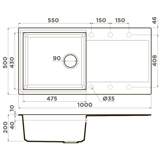 Готовых отверстий для смесителя