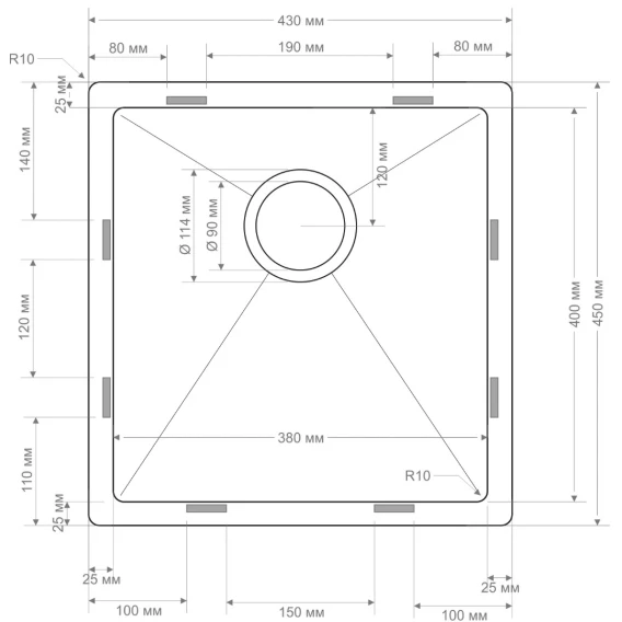 Каркас для ванны 160x110 1Marka Catania 03кт1610