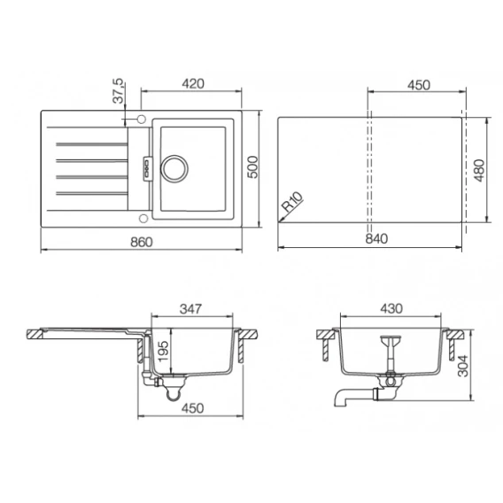 • сифон с возможностью подключения посудомоечной или стиральной машины