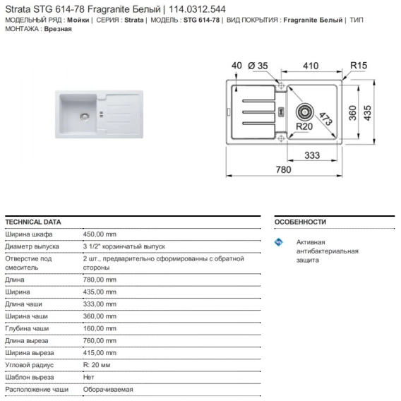 Кухонная мойка Franke Strata STG 614-78 белый 114.0312.544