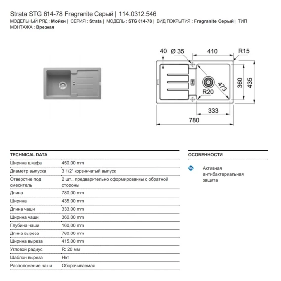 Кухонная мойка Franke Strata STG 614-78 серый 114.0312.546