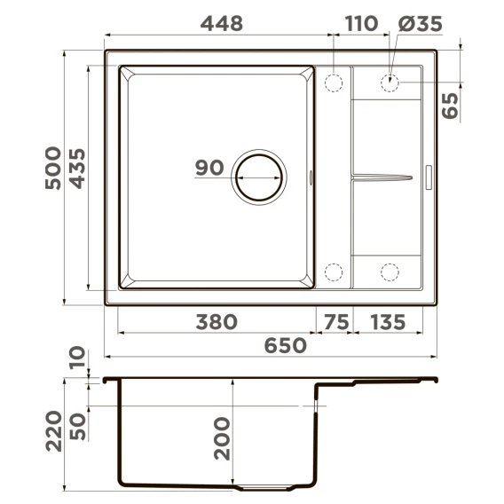 Кухонная мойка Artceramic Omoikiri Sumi 65A-GR ленинградский серый 4997094