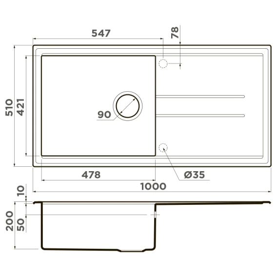 Кухонная мойка Tetogranit Omoikiri Tedori 100-EV эверест 4993922