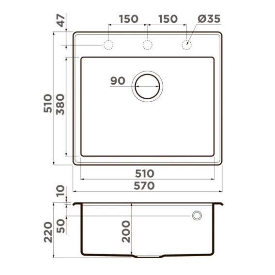 Глубина 51 см