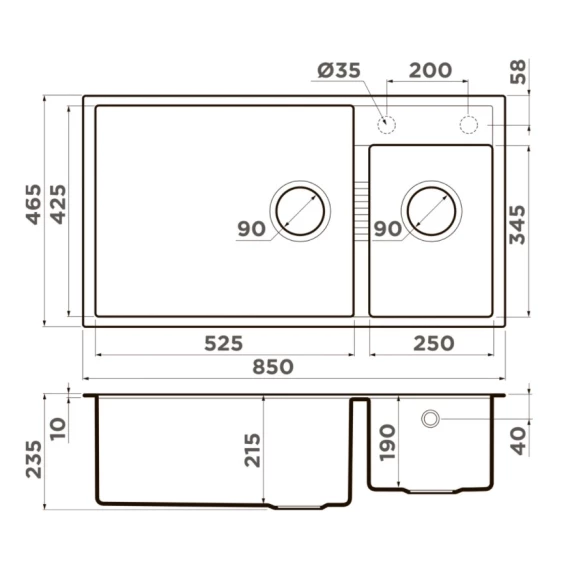 Кухонная мойка Tetogranit Omoikiri Tedori 85-2-U-SA бежевый 4993942