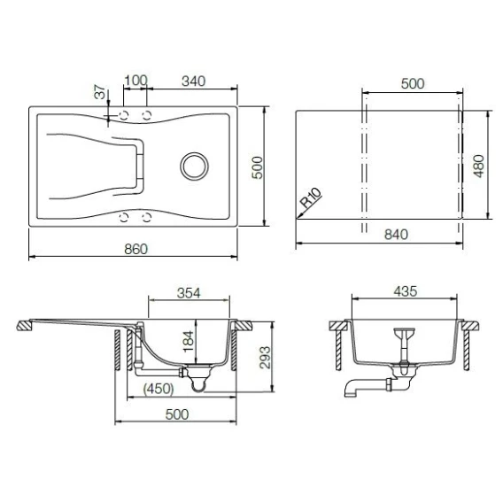 Крепление, Отводная арматура с клапаном-автоматом 3 1/2'', Разделочная доска из черного безопасного стекла