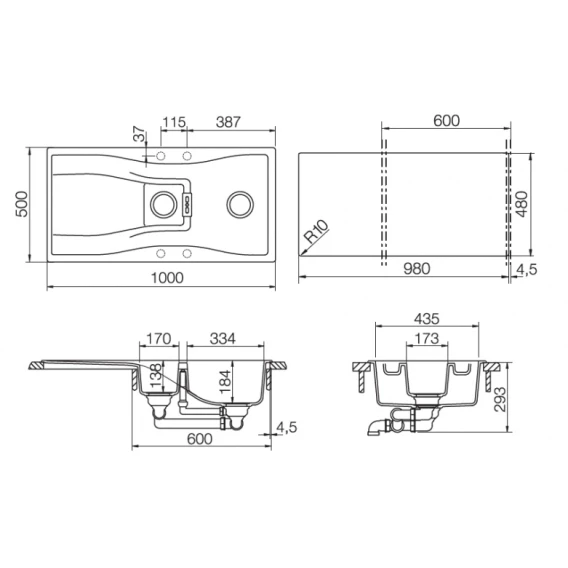 • сифон с возможностью подключения посудомоечной или стиральной машины