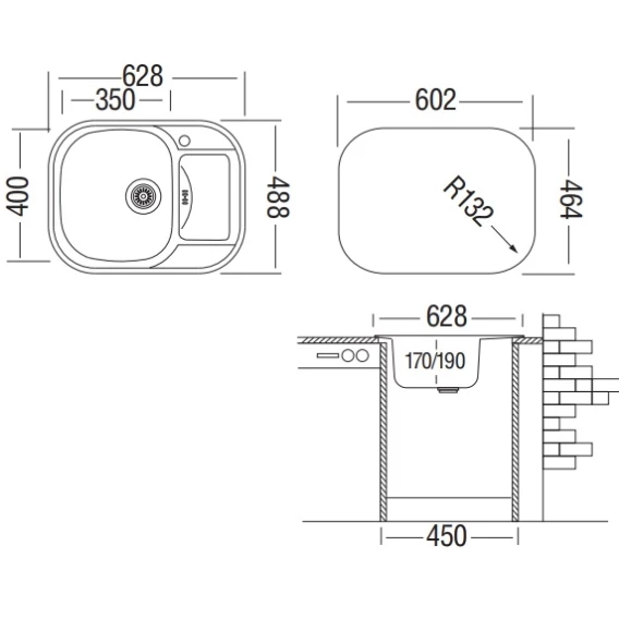Кухонная мойка декоративная сталь Ukinox Галант GAL628.488 -GW6K 1R