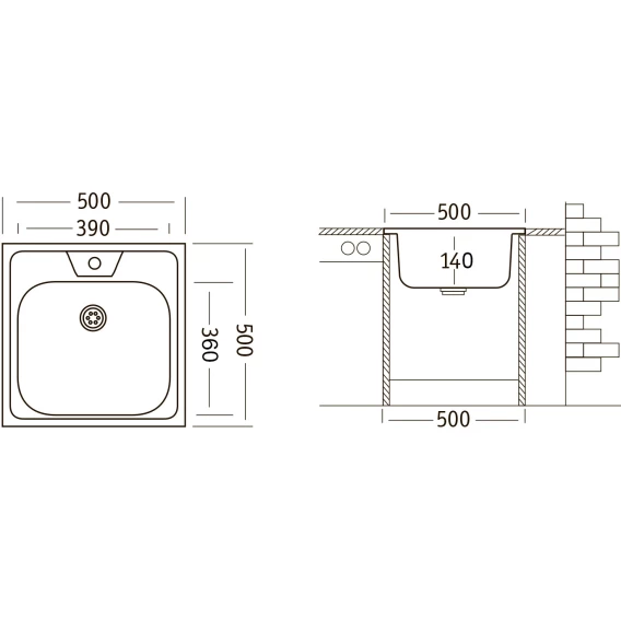 Кухонная мойка матовая сталь Ukinox Стандарт STD500.500 ---4C 0C-