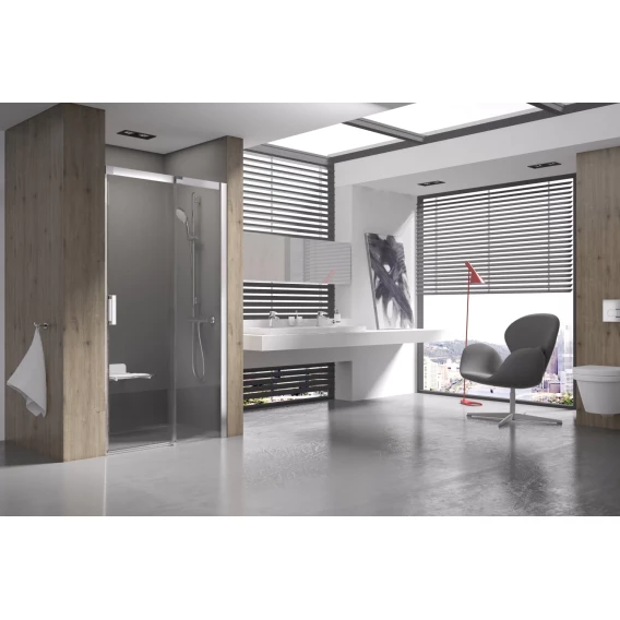 • Изделие состоит из двух частей, одна из которых образует раздвижные двери. Левый или правый варианты открывания дверей определяются тем, на какой стороне, при виде снаружи, находятся петли. Устанавливается в облицованную кафелем ванную комнату (в нишу) на поддоны Perseus Pro Chrome, Gigant Pro Chrome или непосредственно на пол со встроенным душевым каналом или трапом.