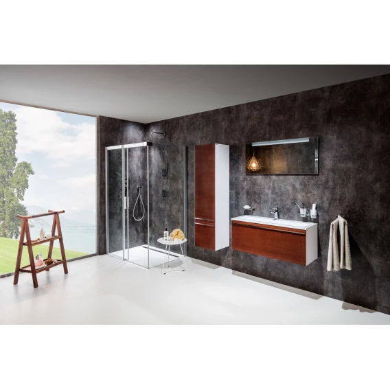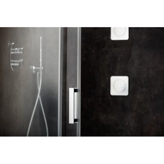 Изделие состоит из двухэлементных душевых дверей (одна неподвижная часть и одна подвижная часть, образующая раздвижные двери) и одноэлементной неподвижной стенки. Левый или правый варианты открывания дверей определяются тем, на какой стороне, при виде снаружи, находятся петли. Устанавливается в облицованный кафелем угол ванной комнаты на поддоны Perseus Pro Chrome, Gigant Pro Chrome или непосредственно на пол со встроенным душевым каналом или трапом.