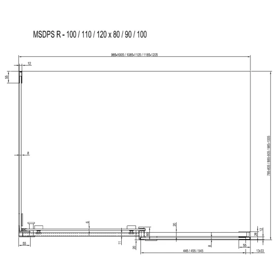 Изделие состоит из двухэлементных душевых дверей (одна неподвижная часть и одна подвижная часть, образующая раздвижные двери) и одноэлементной неподвижной стенки. Левый или правый варианты открывания дверей определяются тем, на какой стороне, при виде снаружи, находятся петли. Устанавливается в облицованный кафелем угол ванной комнаты на поддоны Perseus Pro Chrome, Gigant Pro Chrome или непосредственно на пол со встроенным душевым каналом или трапом.