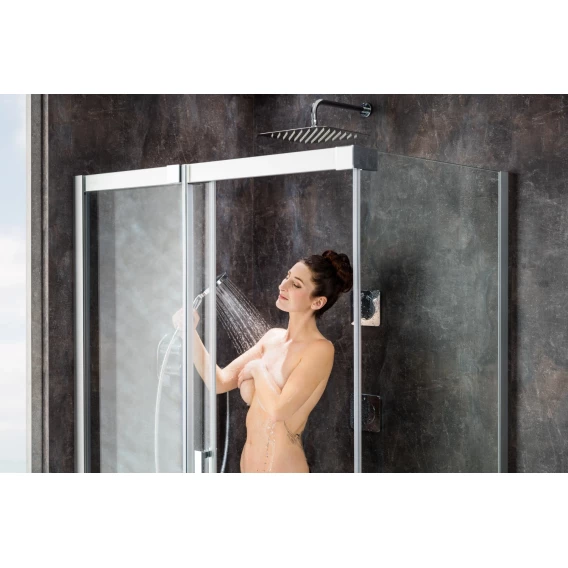 Изделие состоит из двухэлементных душевых дверей (одна неподвижная часть и одна подвижная часть, образующая раздвижные двери) и одноэлементной неподвижной стенки. Левый или правый варианты открывания дверей определяются тем, на какой стороне, при виде снаружи, находятся петли. Устанавливается в облицованный кафелем угол ванной комнаты на поддоны Perseus Pro Chrome, Gigant Pro Chrome или непосредственно на пол со встроенным душевым каналом или трапом.