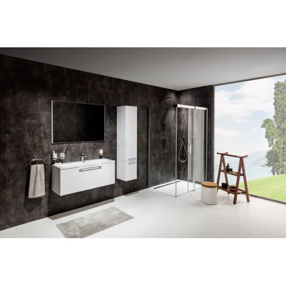 Изделие состоит из двухэлементных душевых дверей (одна неподвижная часть и одна подвижная часть, образующая раздвижные двери) и одноэлементной неподвижной стенки. Левый или правый варианты открывания дверей определяются тем, на какой стороне, при виде снаружи, находятся петли. Устанавливается в облицованный кафелем угол ванной комнаты на поддоны Perseus Pro Chrome, Gigant Pro Chrome или непосредственно на пол со встроенным душевым каналом или трапом.