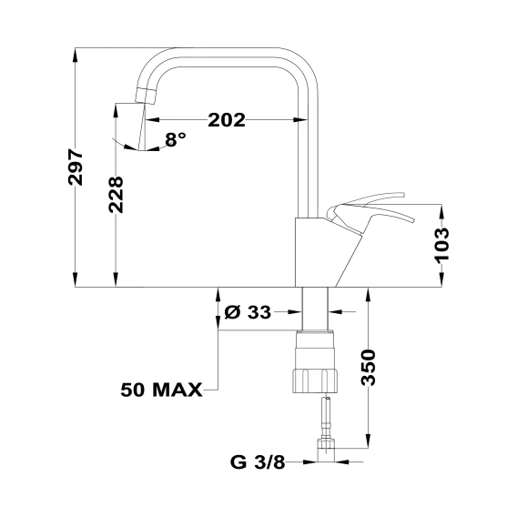 • Противонакипной аэратор поворачивается на 8°