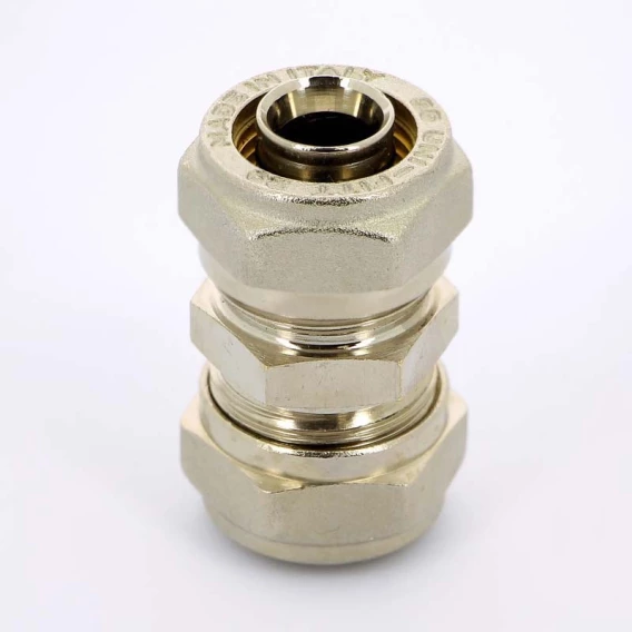 Монтаж обжимных фитингов следует производить в соответствии с требованиями СП 40-102-2000;СП 41-102-98; СП 40-103-98 и СНиП 3.05.01-85.При монтаже системы следует придерживаться следующего порядка:• отрезать металлопластиковую трубу нужной длины, строго перпендикулярно оси трубы;• подготовить трубу к монтажу фитинга (откалибровать трубу и снять внутреннюю фаску);• одеть на трубу гайку и обжимное кольцо (цангу);• вставить до упора штуцер фитинга в трубу, не повредив уплотнительных колец;• пододвинуть к корпусу фитинга обжимное кольцо;• накрутить от руки гайку на фитинг;• с помощью двух ключей соответствующего размера затянуть гайку на фитинге.Для качественного монтажа следует соблюдать следующие усилие затяжки ключами:• для фитингов d16 – 11/4 оборота гайки после затяжки от руки;• для фитингов d20-26 – 1 оборот гайки после затяжки от руки.