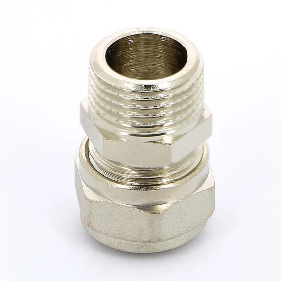 Монтаж обжимных фитингов следует производить в соответствии с требованиями СП 40-102-2000;СП 41-102-98; СП 40-103-98 и СНиП 3.05.01-85.При монтаже системы следует придерживаться следующего порядка:• отрезать металлопластиковую трубу нужной длины, строго перпендикулярно оси трубы;• подготовить трубу к монтажу фитинга (откалибровать трубу и снять внутреннюю фаску);• одеть на трубу гайку и обжимное кольцо (цангу);• вставить до упора штуцер фитинга в трубу, не повредив уплотнительных колец;• пододвинуть к корпусу фитинга обжимное кольцо;• накрутить от руки гайку на фитинг;• с помощью двух ключей соответствующего размера затянуть гайку на фитинге.Для качественного монтажа следует соблюдать следующие усилие затяжки ключами:• для фитингов d16 – 11/4 оборота гайки после затяжки от руки;• для фитингов d20-26 – 1 оборот гайки после затяжки от руки.