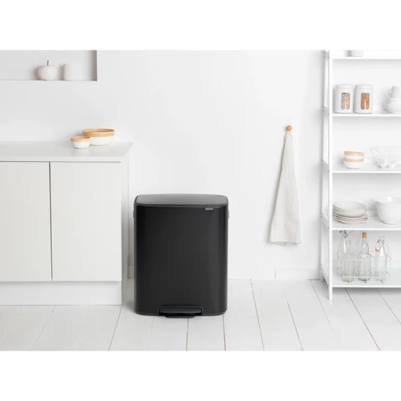 Высокий и одновременно вместительный бак для ещё большего количества домашних отходов. 2 съемных внутренних ведра – идеальное решение для раздельного сбора мусора. Бесшумный – плавное закрывание крышки и необыкновенно мягкий ход педали. Не пропускает запах – плотно прилегающая крышка. Крышка удобно фиксируется в открытом положении специальным переключателем. Экономия места – удобно устанавливается вплотную к стене или в углу. Удобная очистка – съемные внутренние ведра из пластика. Отличная устойчивость и защита пола от повреждения – нескользящее основание. Бесплатная упаковка мешков для мусора Brabantia PerfectFit (размер O) – удобная замена и всегда опрятный вид. Бронзовый сертификат "Cradle to Cradle". Бак подлежит вторичной переработке на 98%, упаковка и внутренние ведра на 100%.
