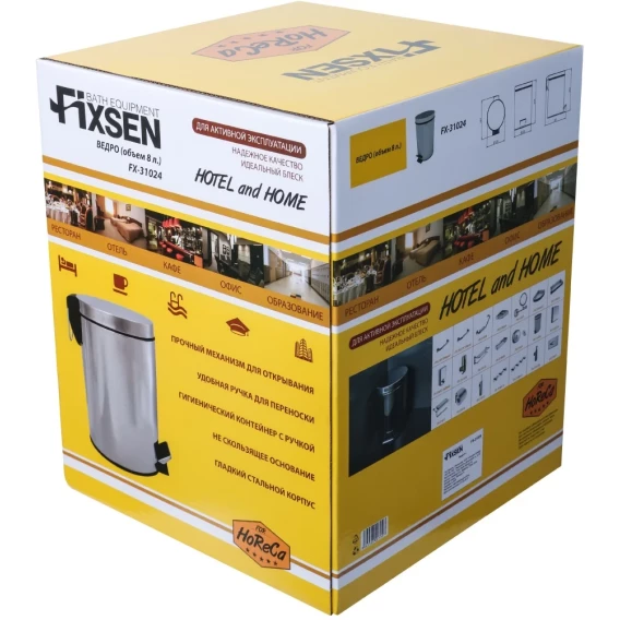 Мусорное ведро Fixsen Hotel FX-31024 8л, с педалью, хром