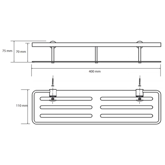 Смотрится гораздо солиднее навесных ненадежных полок, блестящая, стильная, красивая. Покрытие прочное, не облупляется. Благодаря прорезям вода с мочалок стекает и всё быстро сохнет.