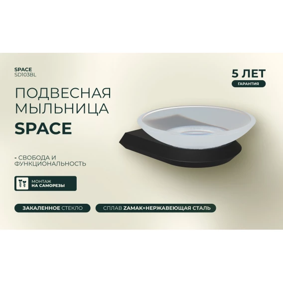 Мыльница Knotlor Space SD103BL настенная, черный матовый