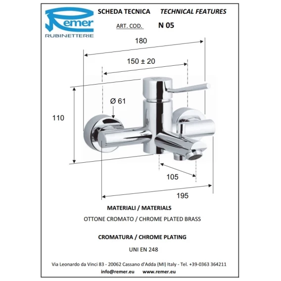 Смеситель для раковины с донным клапаном Remer Liberty 13ULI