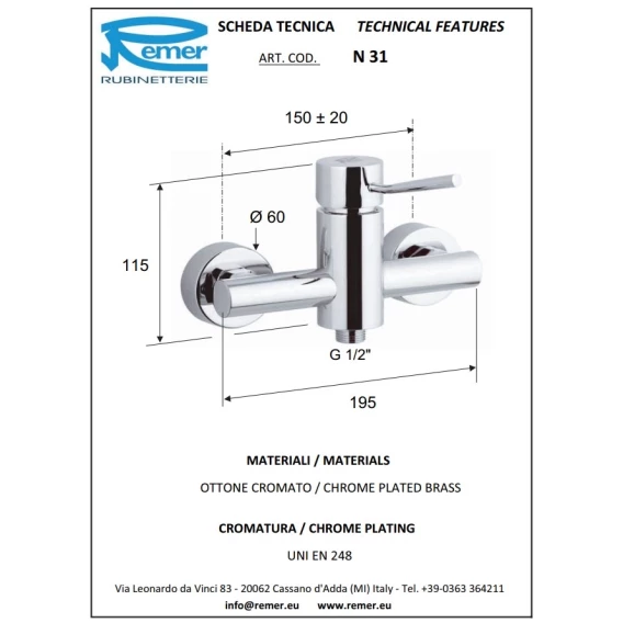 Смеситель для биде без донного клапана Remer Qubika Q21