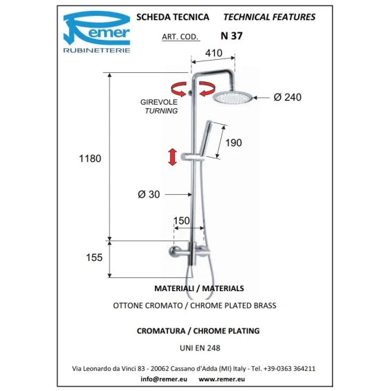 Металлическая розетка, Эксцентрики, Душевой шланг, Душевая лейка, Держатель для душевой лейки, Верхний душ, Смеситель, Кронштейн, Штанга душевая