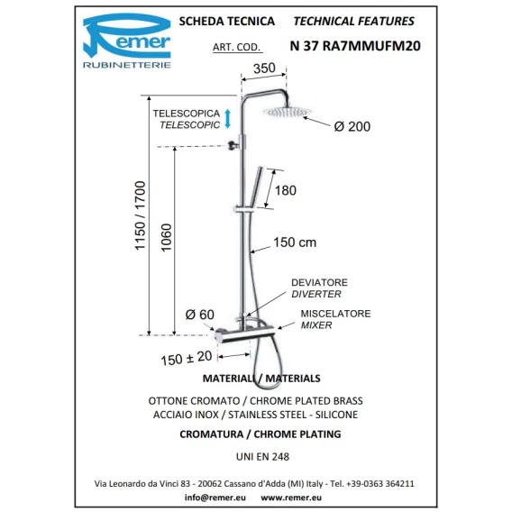 Душевая система 200 мм Remer Minimal N37RA7MMUFM20