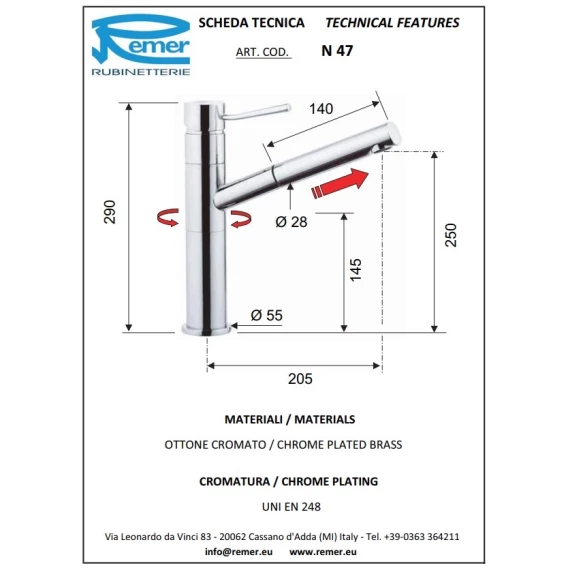 Кран для холодной воды без донного клапана Remer Liberty 57LI