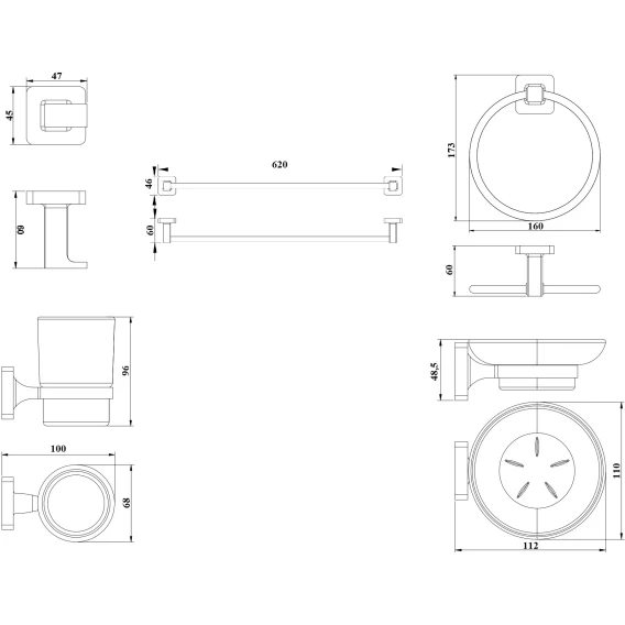 Крючок, Держатель туалетной бумаги, Полотенцедержатель, Стакан, Мыльница
