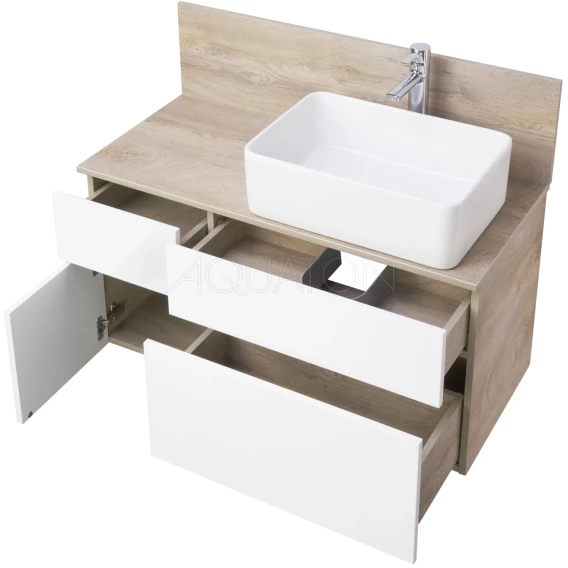 • В комплекте со столешницей предусмотрена также задняя панель, которая защитит пространство между тумбой и стеной от попадания влаги