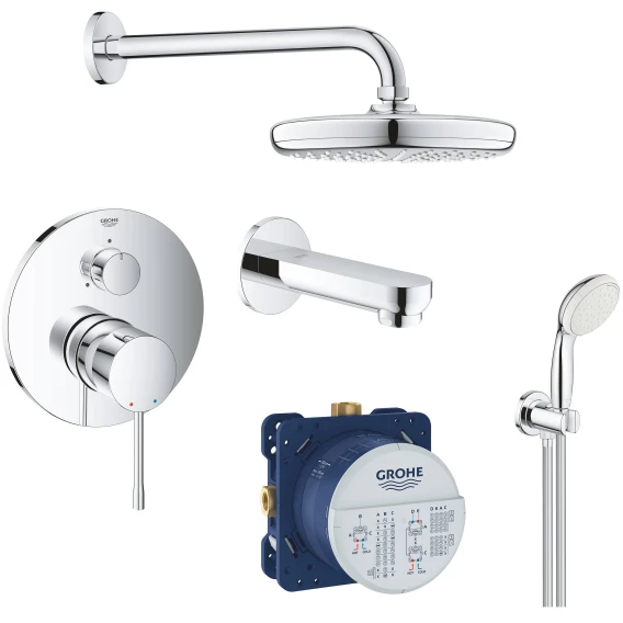 Душевой шланг, Душевая лейка, Подключение для душевого шланга с держателем, Верхний душ, Излив, Скрытая монтажная часть, Смеситель, Кронштейн